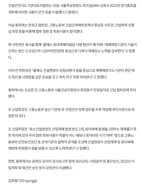 【2.25(금) 제 6회차 정기총회 - e대한경제 신문기사】