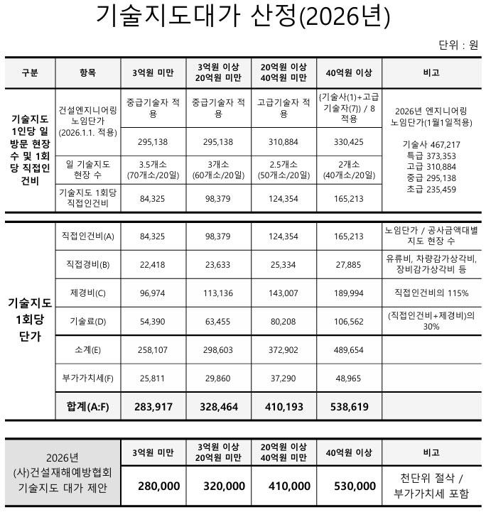 2026년도 건설공사 기술지도대가 가이드라인 공지